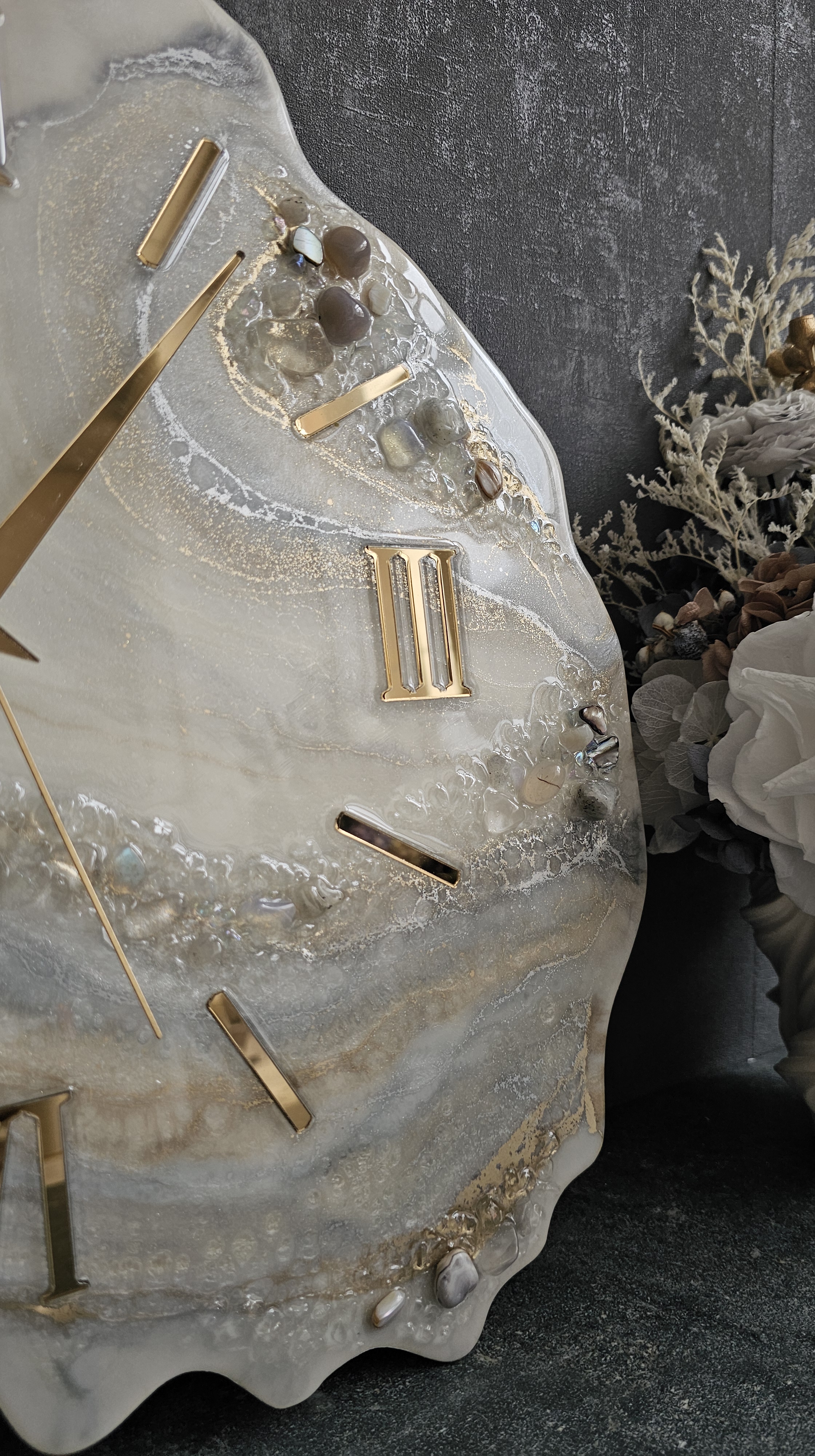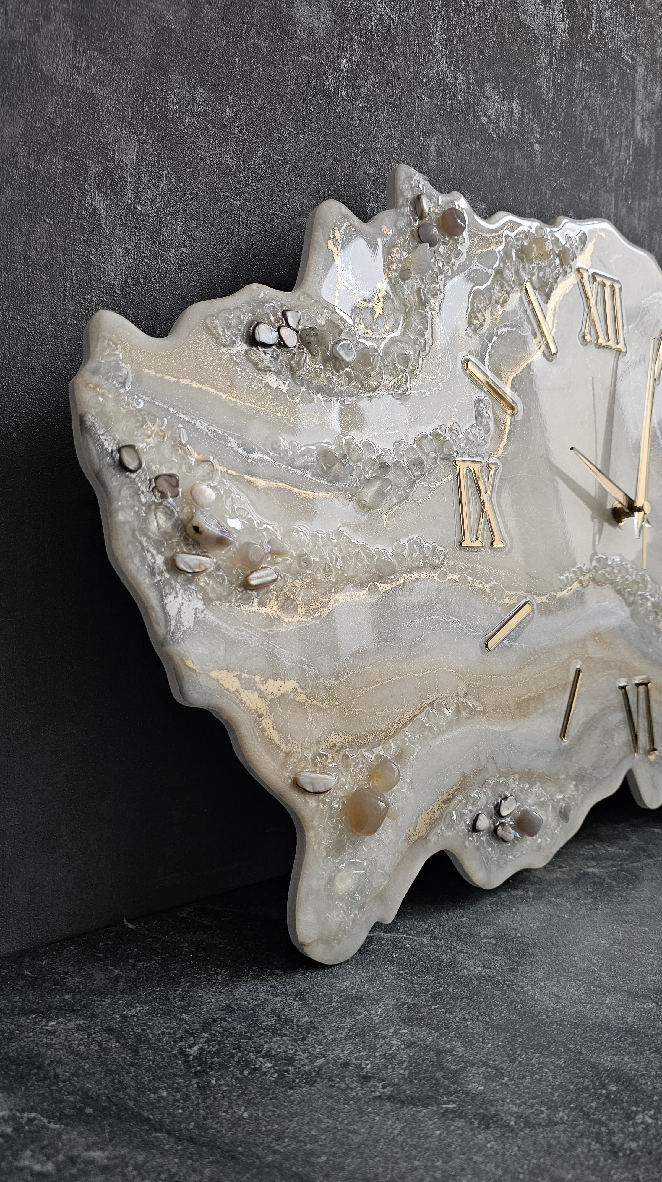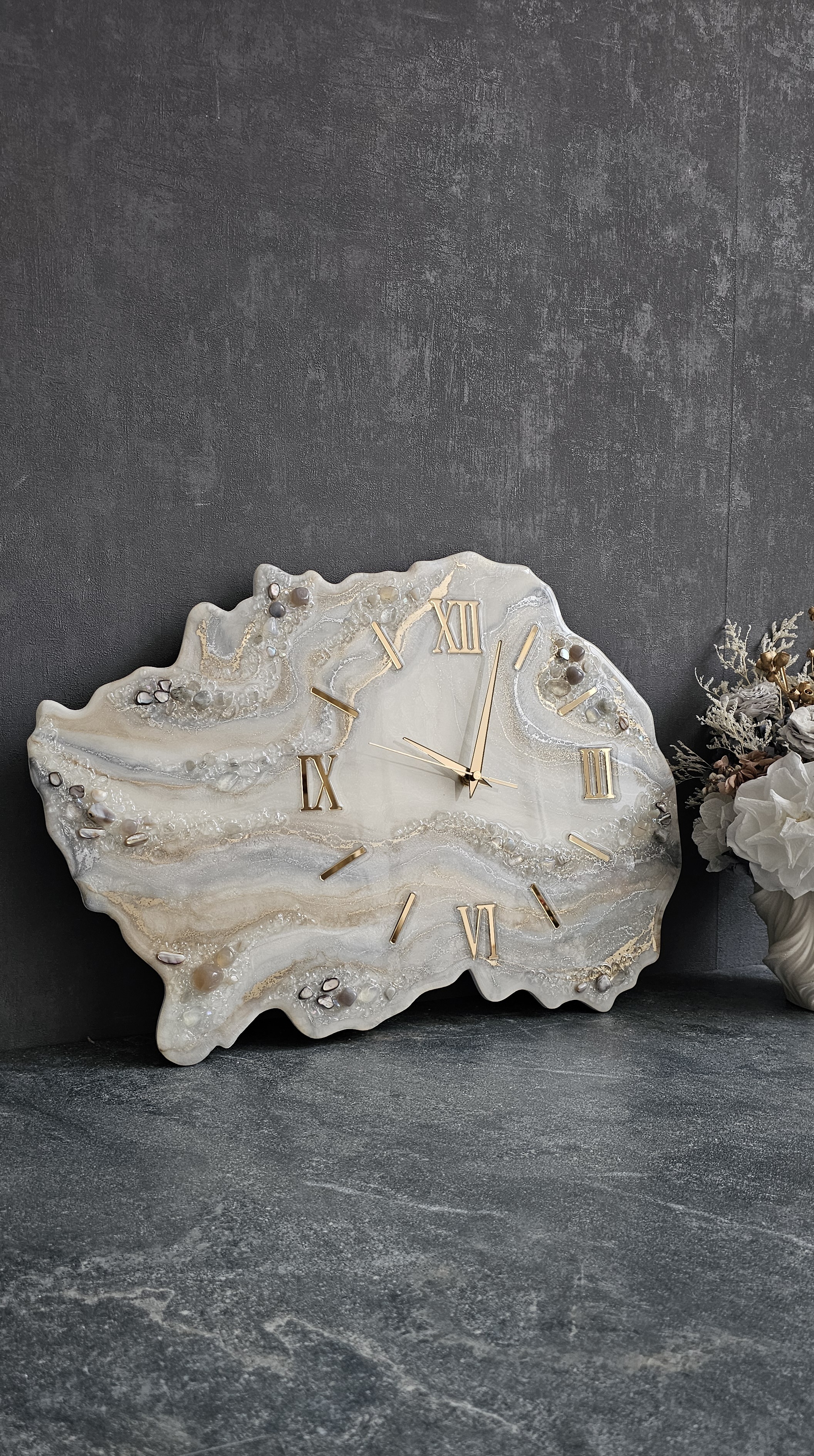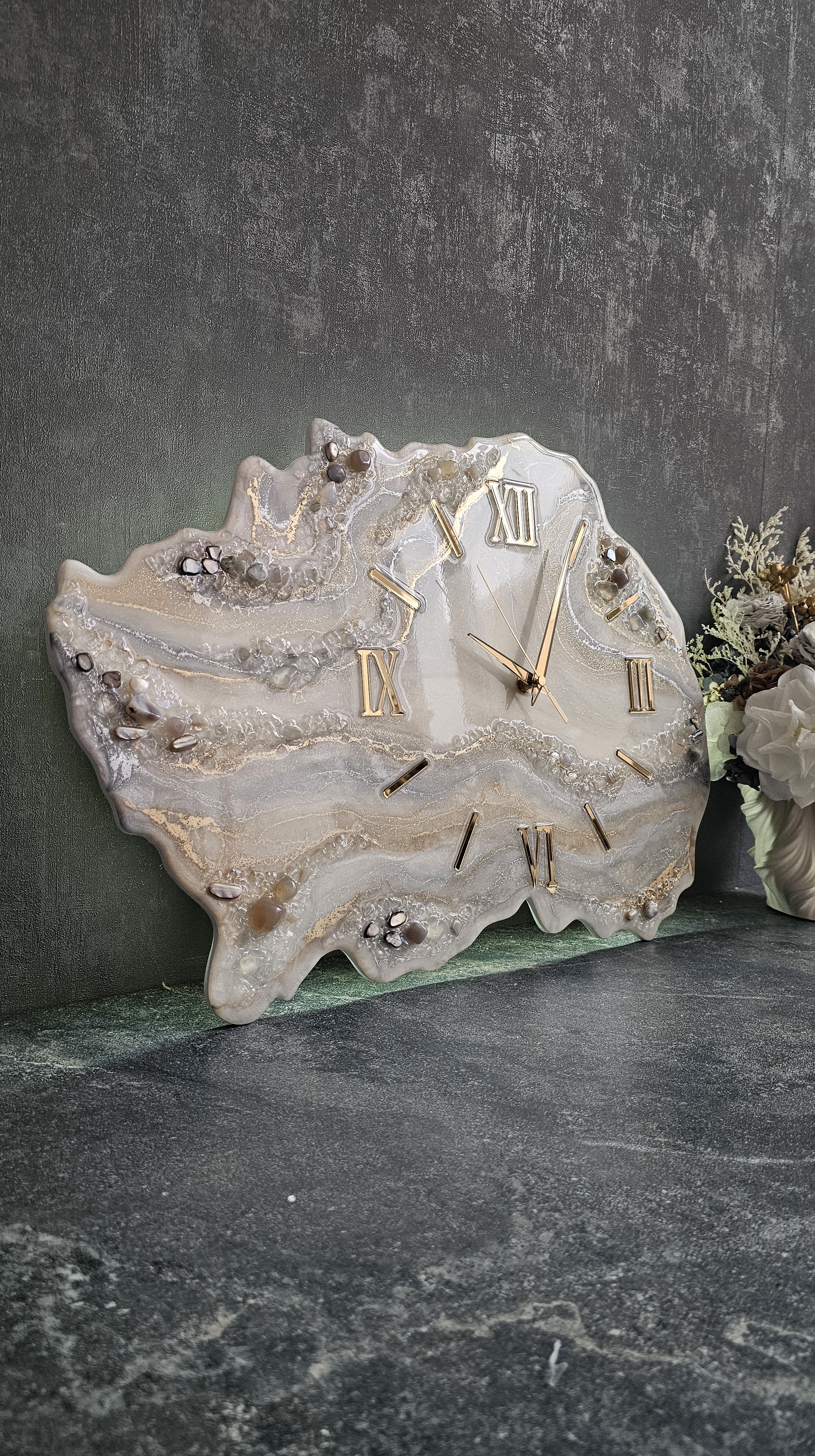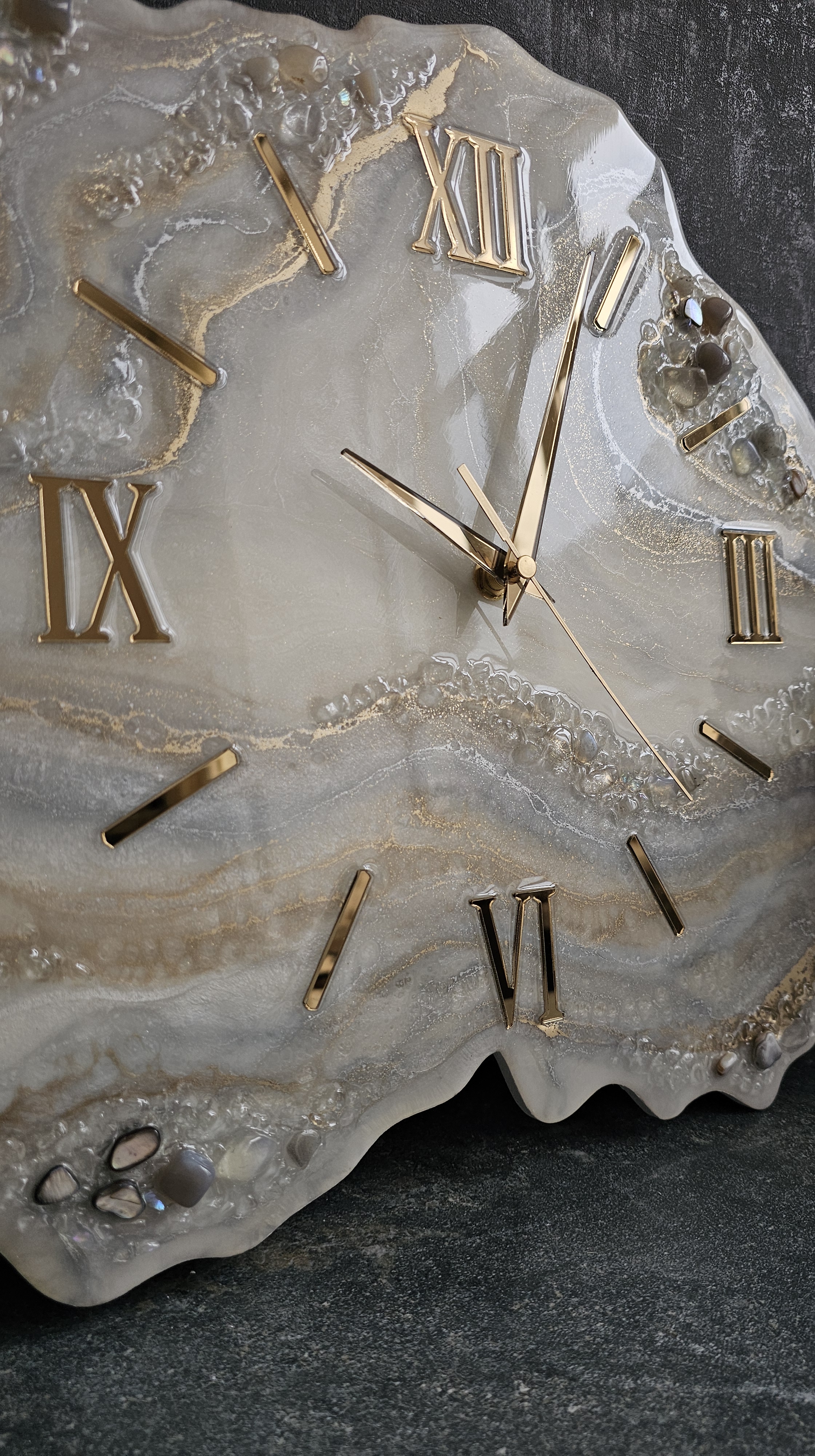 Настенные часы ручной работы из эпоксидной смолы с натуральными камнями.