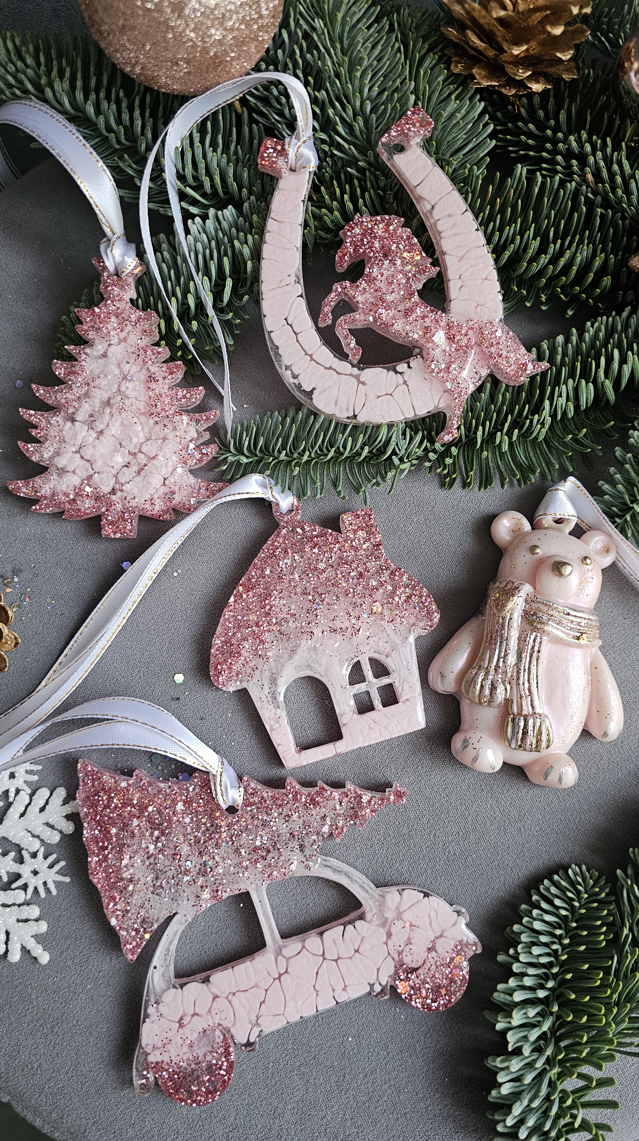 Новогодний набор игрушек “Розовые мечты” 5шт